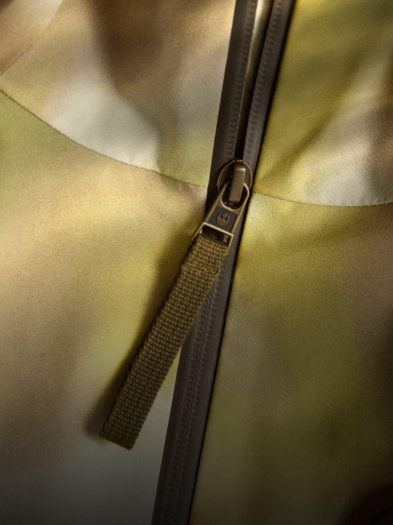 Authentic details evoke Rebel gear from zipper pulls and daisy chains to brass hardware.