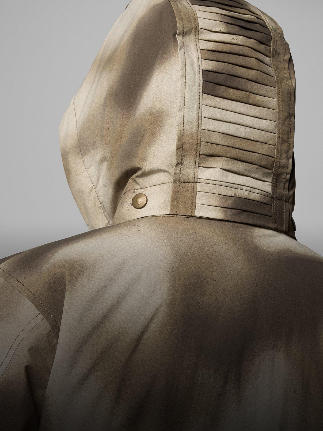 Zippered hand pockets, side snaps, and adjustable belt deliver added utility and convenience.